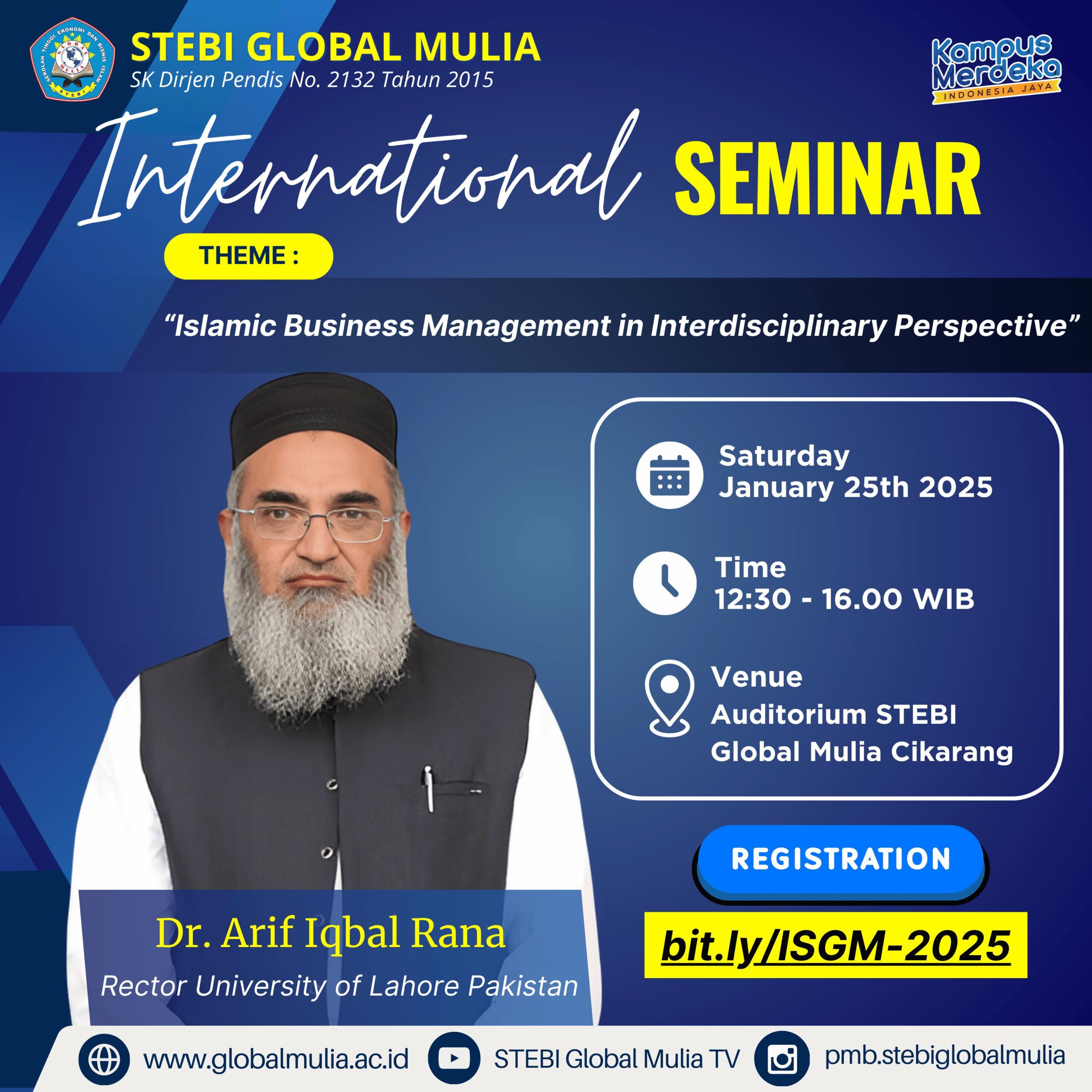 Cikarang, 25 Januari 2025 – Sekolah Tinggi Ekonomi dan Bisnis Islam (STEBI) Global Mulia Cikarang sukses menyelenggarakan Seminar Internasional bertajuk “Islamic Business Management in Interdisciplinary Perspective” di Aula STEBI Global Mulia. Kegiatan ini menghadirkan narasumber internasional dan diikuti oleh lebih dari 170 peserta dari kalangan dosen, mahasiswa, praktisi, serta perwakilan lembaga keuangan syariah dan industri halal.